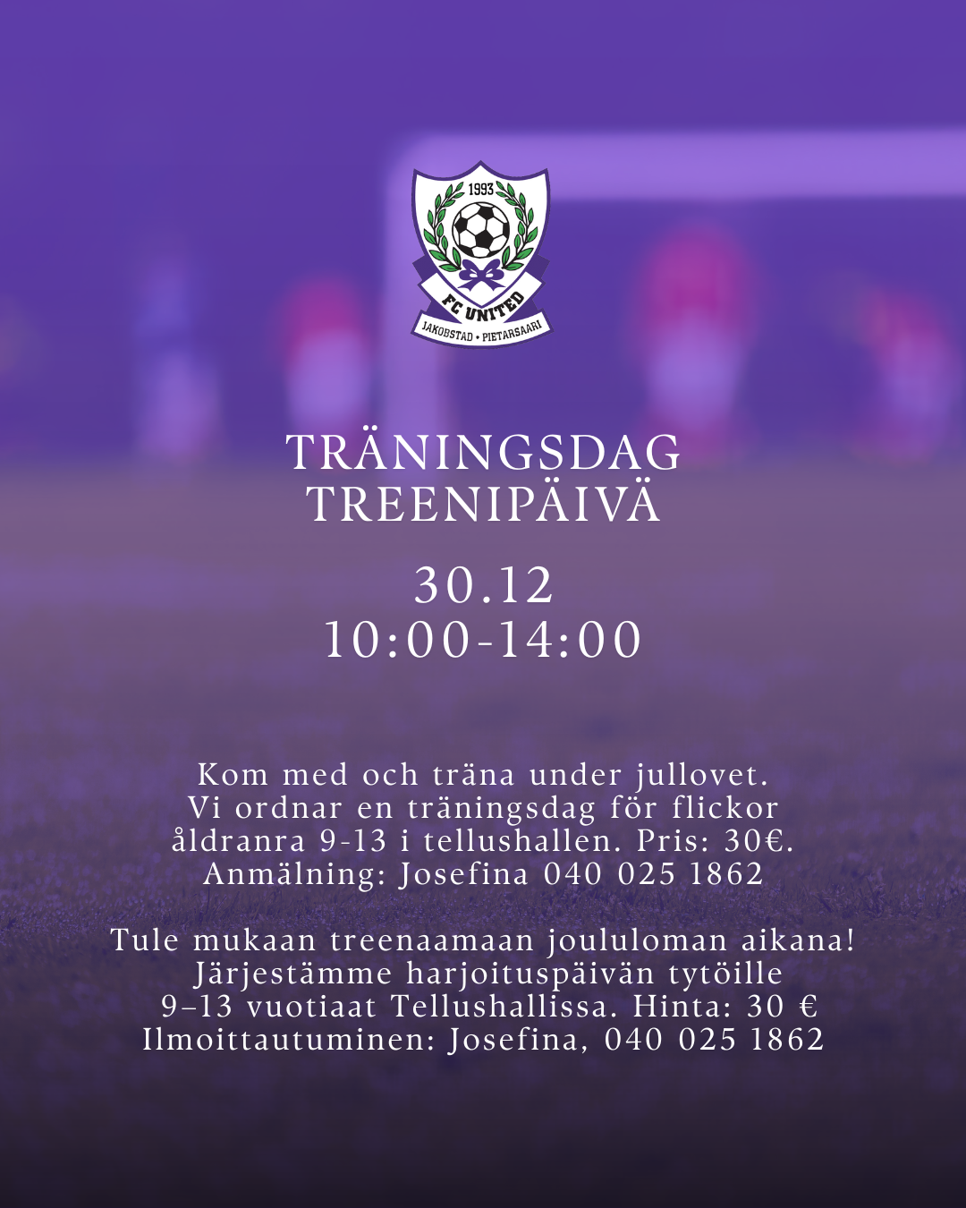 Under sommarsäsongen tränar vi främst på vår egen plan i Jakobstad, den kallas även United Plan. Adress: Trädgårdsgatan 13, 68600 Jakobstad.