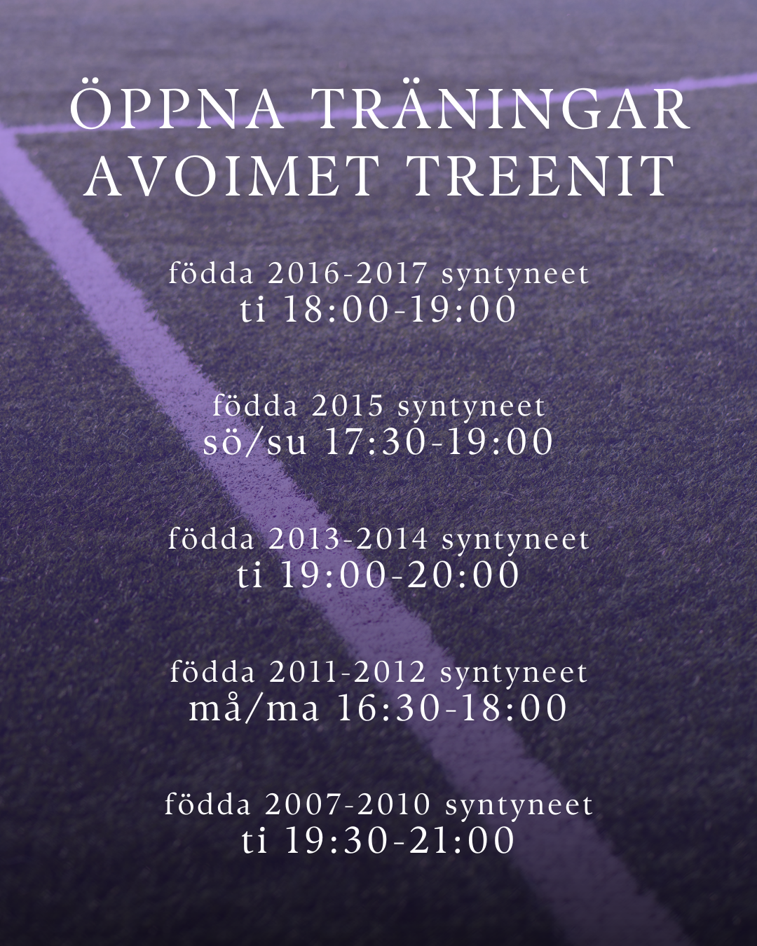 Haluamme mielellämme, että lapset ja nuoret jatkavat harjoittelua ja pysyvät liikkeessä myös varsinaisen kauden ulkopuolella. Siksi haluamme tarjota mahdollisuuden harjoitella nyt marras–joulukuussa 2007–2017 syntyneille tytöille.